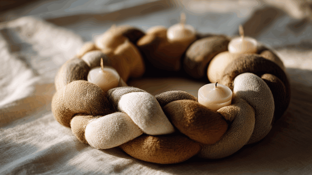 Ein Stoffkranz ist wie ein warmer Pullover für dein Zuhause: weich, gemütlich, langlebig – und kindersicher. Ideal, wenn du offenes Feuer vermeiden willst.
