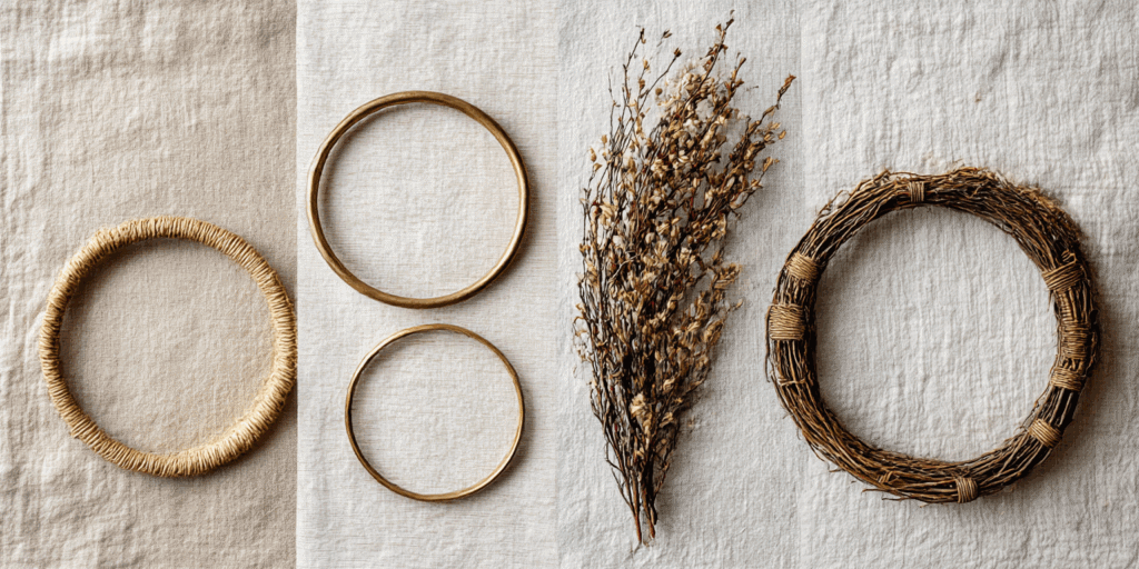Ein Kranz ist nur so stabil wie sein Rohling. Und hier lauert die zweite große Falle: Du wählst den stylischen Metallring, siehst aber nicht, dass er eine deutlich geübtere Technik erfordert als z. B. ein Strohrömer.