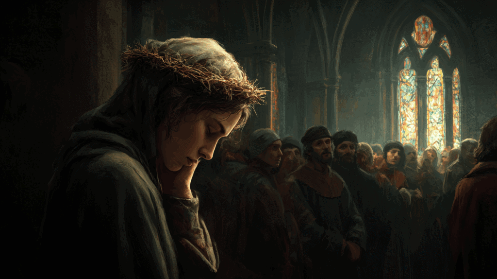 Während der Kranz im weltlichen Leben für Freude, Sieg und soziale Zugehörigkeit stand, erhielt er in der religiösen Sphäre eine völlig neue Bedeutung. In den Händen der Theologie wurde aus dem Symbol der Ehre ein Zeichen des Leidens, der Demut – und schließlich des göttlichen Triumphes. Hier zeigt sich, wie flexibel und tiefgründig mittelalterliche Symbolik sein konnte: Ein und dieselbe Form – ein Kreis aus Blättern, Blumen oder Dornen – konnte das irdisch Vergängliche ebenso ausdrücken wie das Ewige.