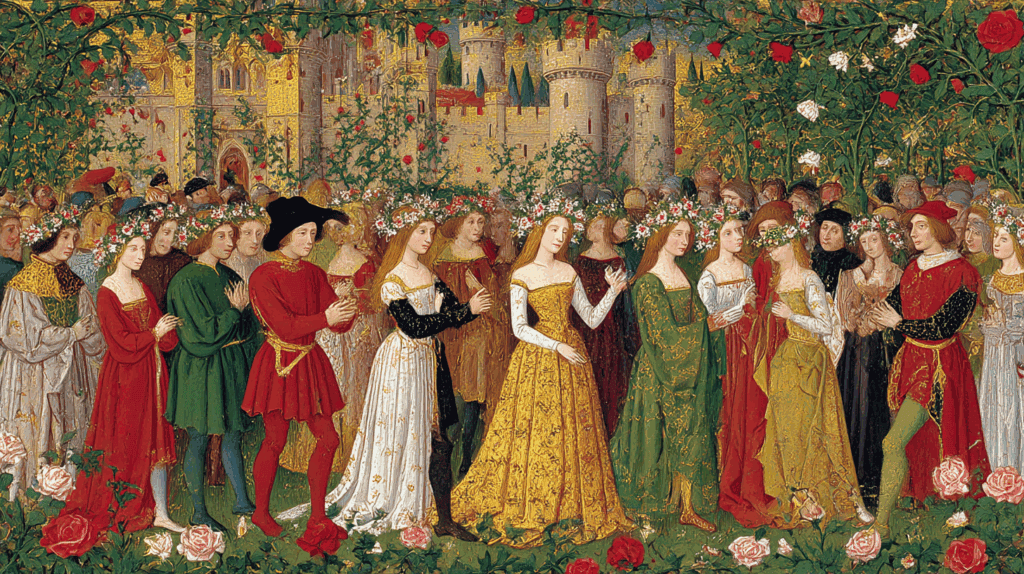 Im höfischen Mittelalter war der Kranz allgegenwärtig. Männer wie Frauen trugen ihn zu Festen, Tänzen und Turnieren. Doch was zunächst nach Dekoration klingt, war in Wahrheit ein vielschichtiges soziales Signal.