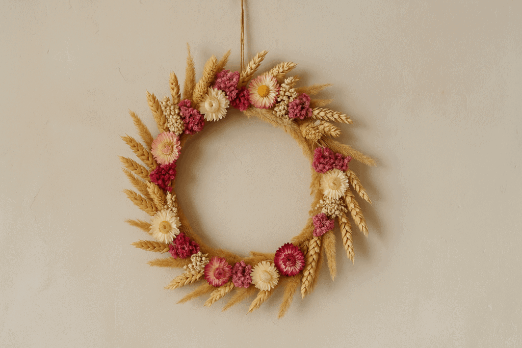 Ein Kranz verbindet Natur, Handwerk und Persönlichkeit. Schau auf farbenkranz.de vorbei und entdecke, wie du mit Trockenblumen deinen eigenen, ganz persönlichen Kreis aus Farben und Bedeutung gestalten kannst.