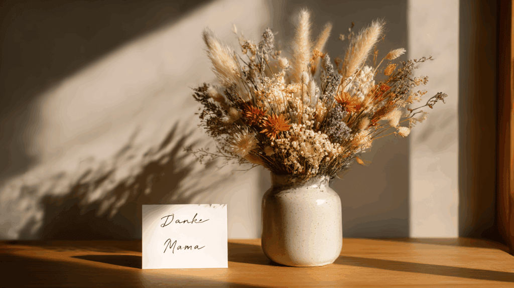 Warum beim Strauß aufhören, wenn Trockenblumen so viel mehr können? Sie sind geduldig, vielseitig und bringen deine Wertschätzung in eine Form, die genauso individuell ist wie deine Mama. Ob du kreativ bist oder nicht – hier findest du Ideen, die garantiert wirken.