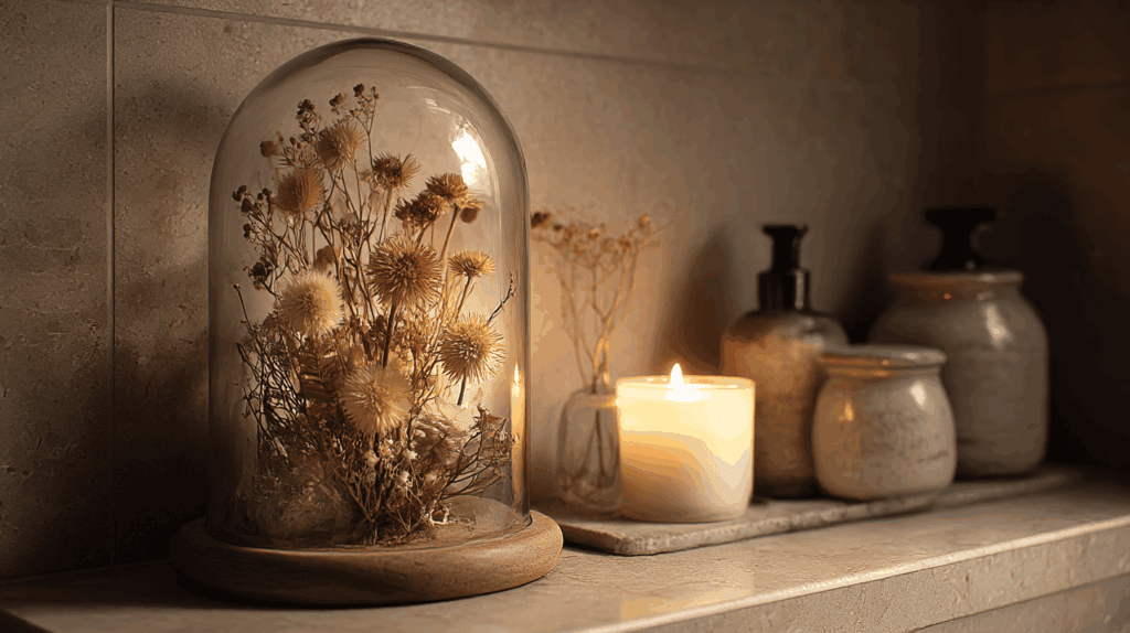• Glashauben oder Terrarien: Schaffen eine elegante Barriere gegen Feuchtigkeit und Staub, verleihen der Deko ein kuratiertes, fast museales Flair.
