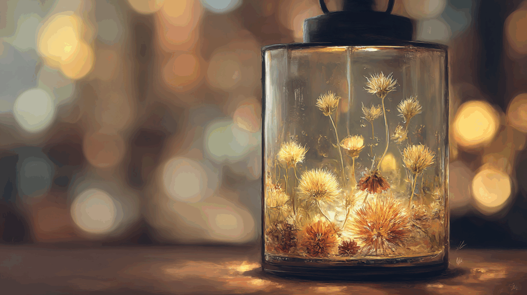 Warum? Weil sie zwei Welten miteinander verbindet: die zarte, stille Schönheit getrockneter Blüten und den warmen, lebendigen Glanz moderner LED-Beleuchtung. Gemeinsam schaffen sie ein Ambiente, das gleichermaßen beruhigt und verzaubert – perfekt für Wohnzimmer, Hochzeiten, festliche Tafeln oder gemütliche Abende auf dem Balkon.