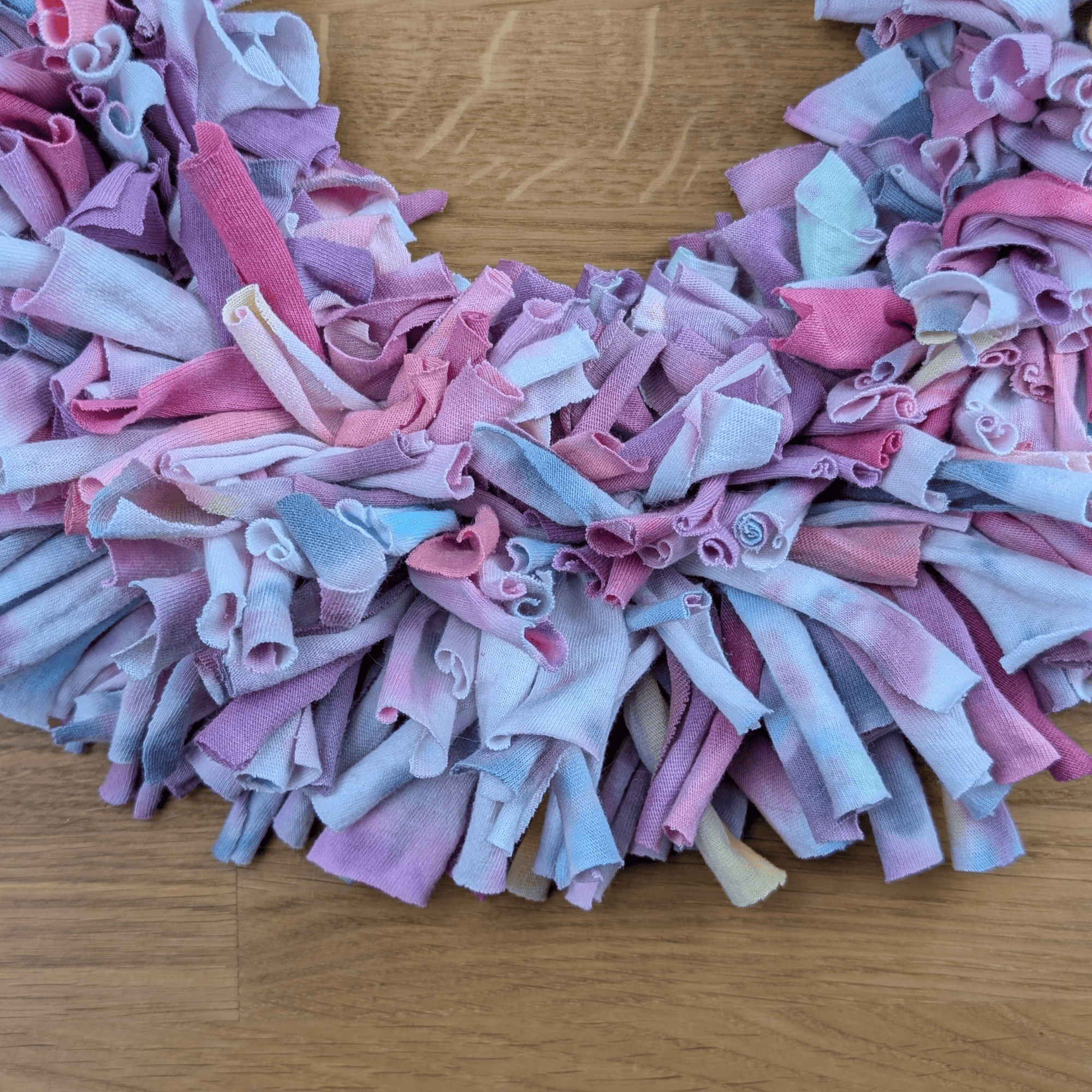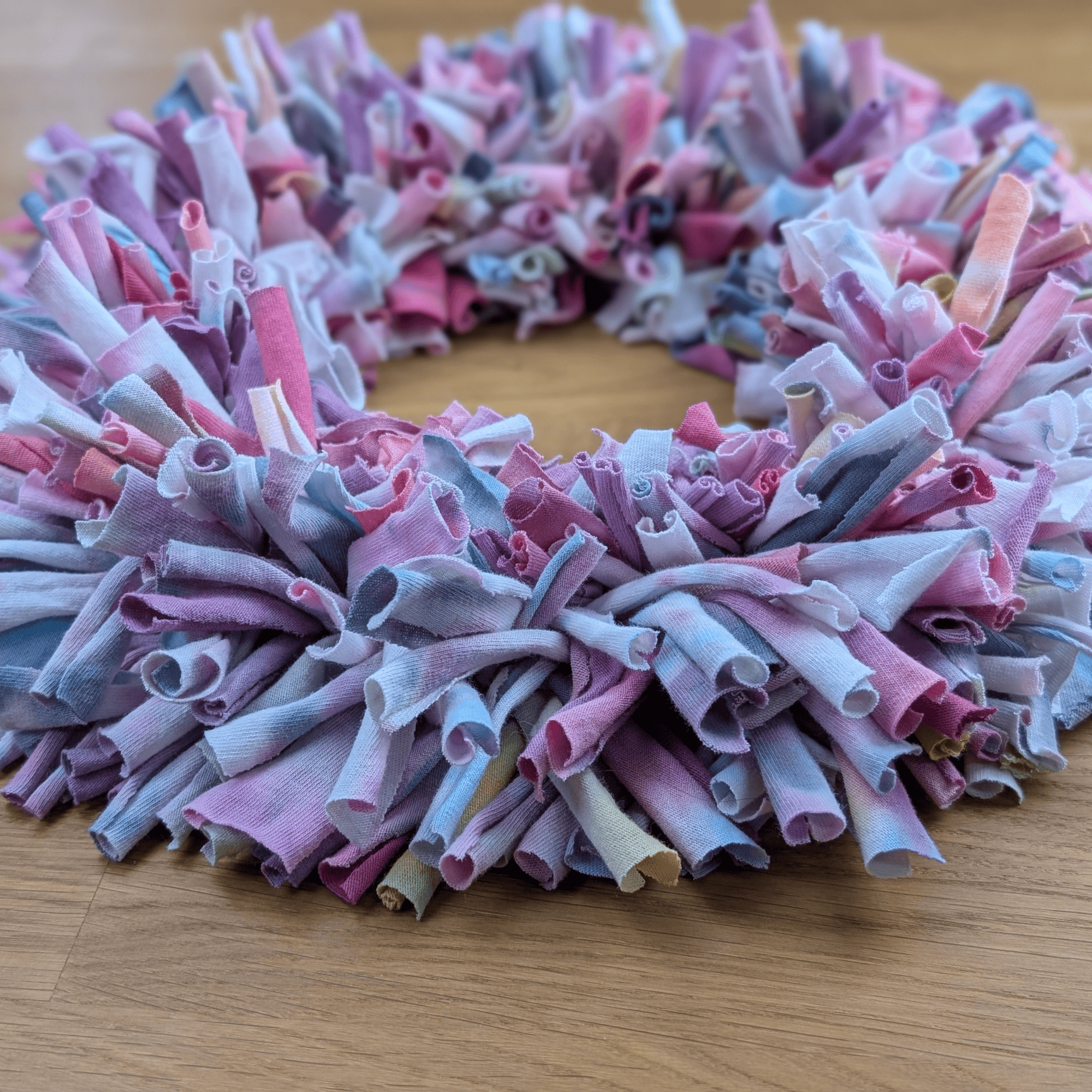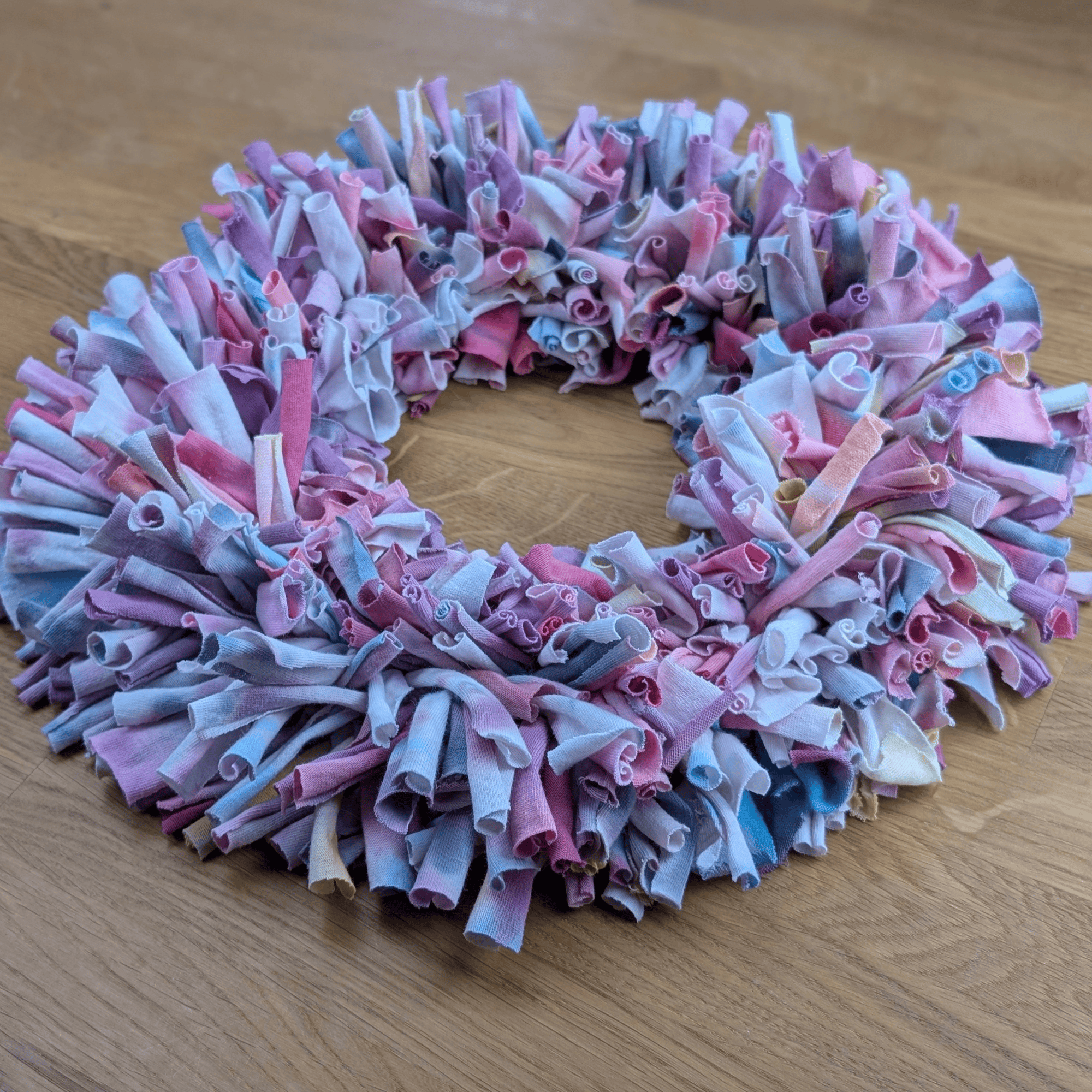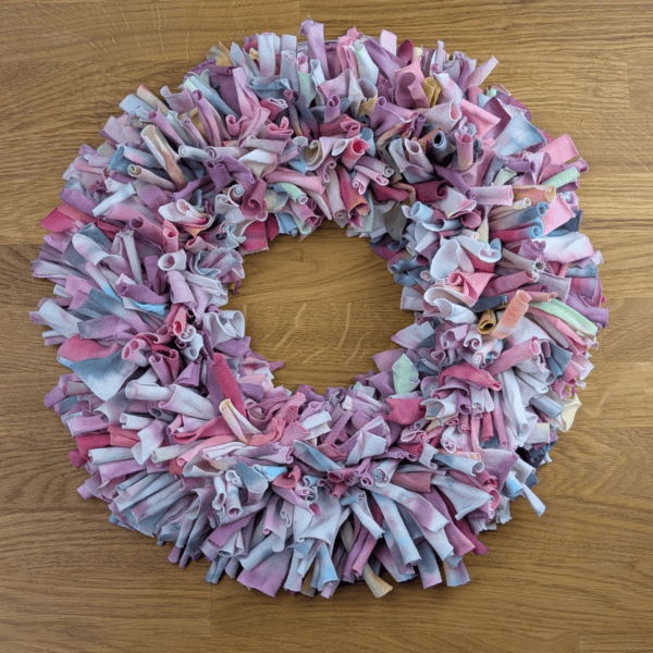 Handgefertigter Textilkranz aus gefärbtem T-Shirtstoff