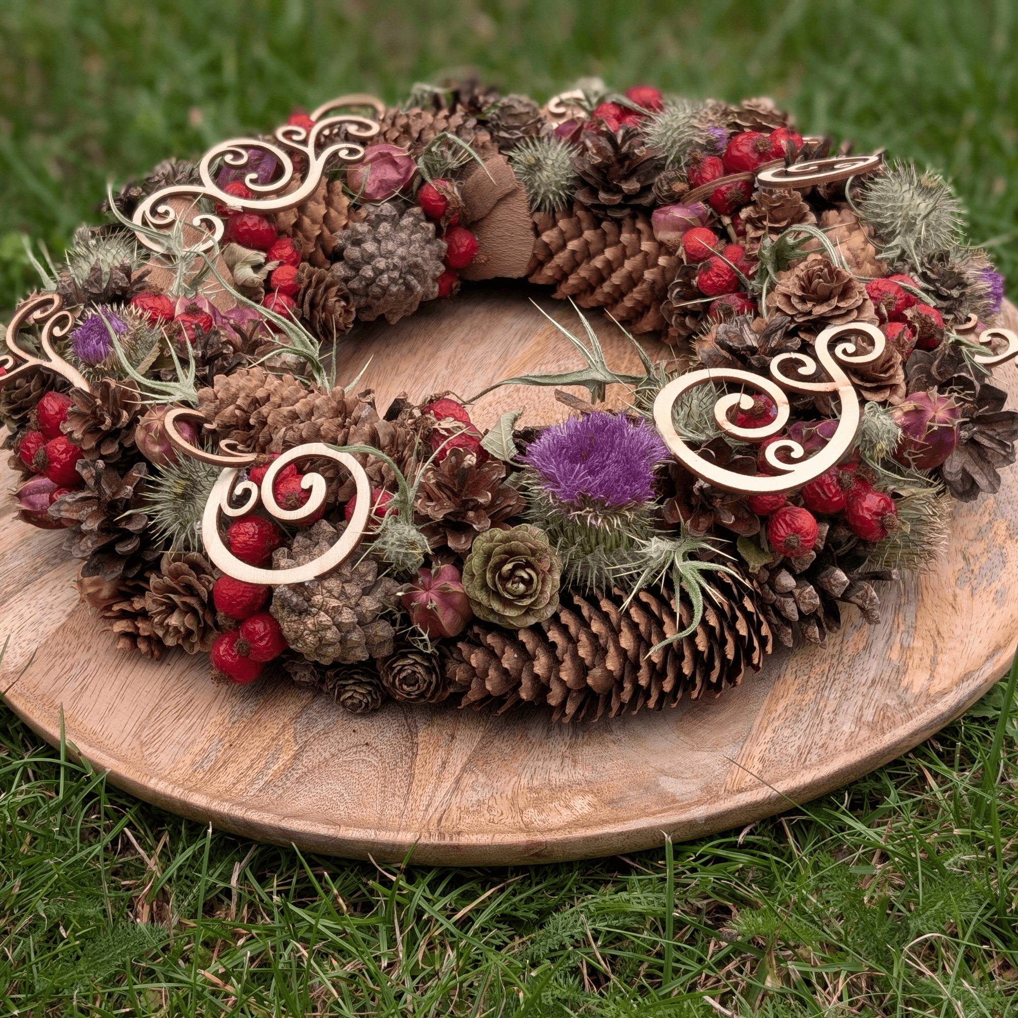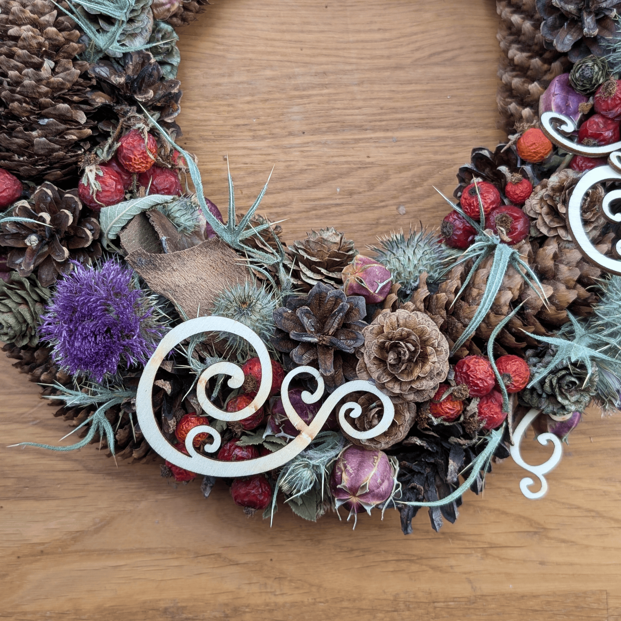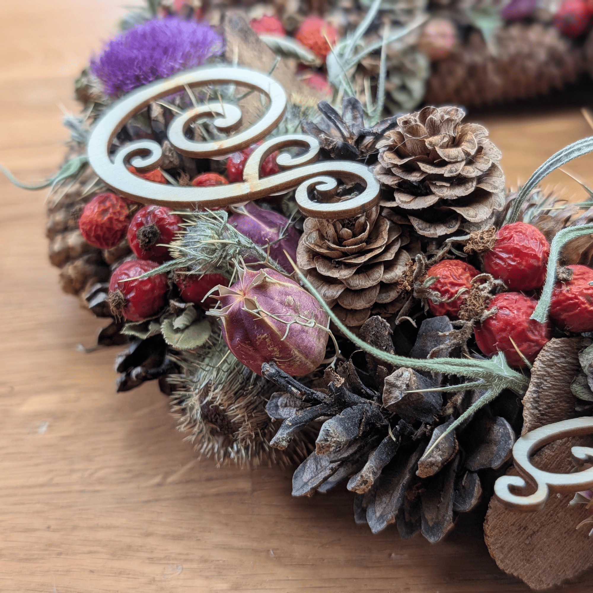 Herbstkranz mit Disteln, Rinde & Hagebutten – Rustikal. Natürlich. Handgemacht.