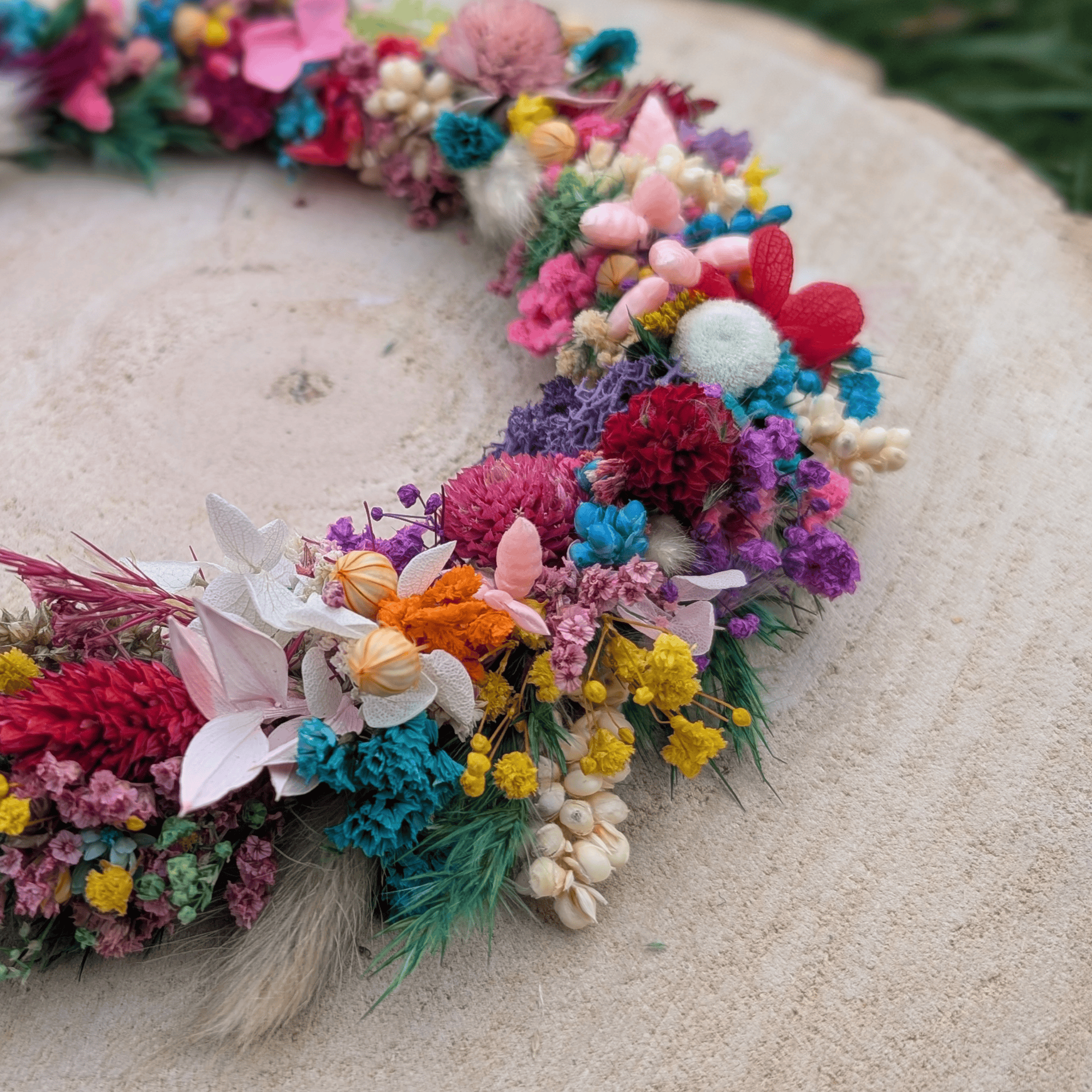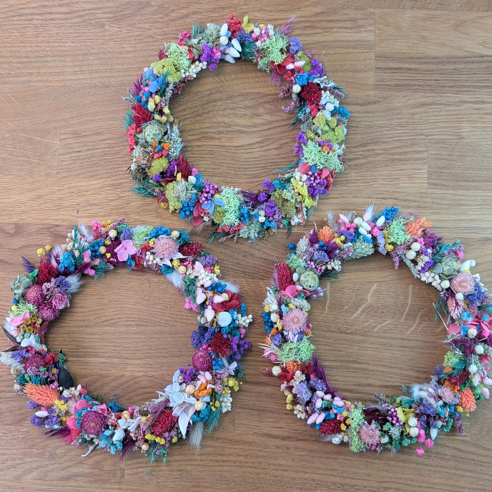 Ideal als Tür- oder Wandkranz, als Tischdekoration oder für saisonale Akzente im Boho- oder Landhausstil.