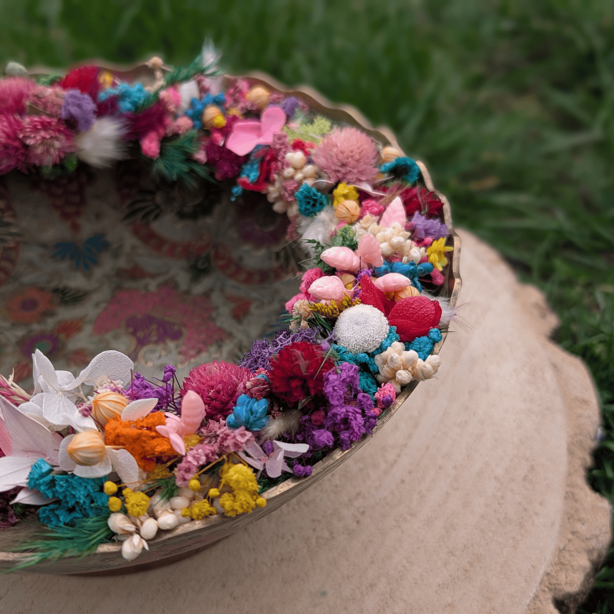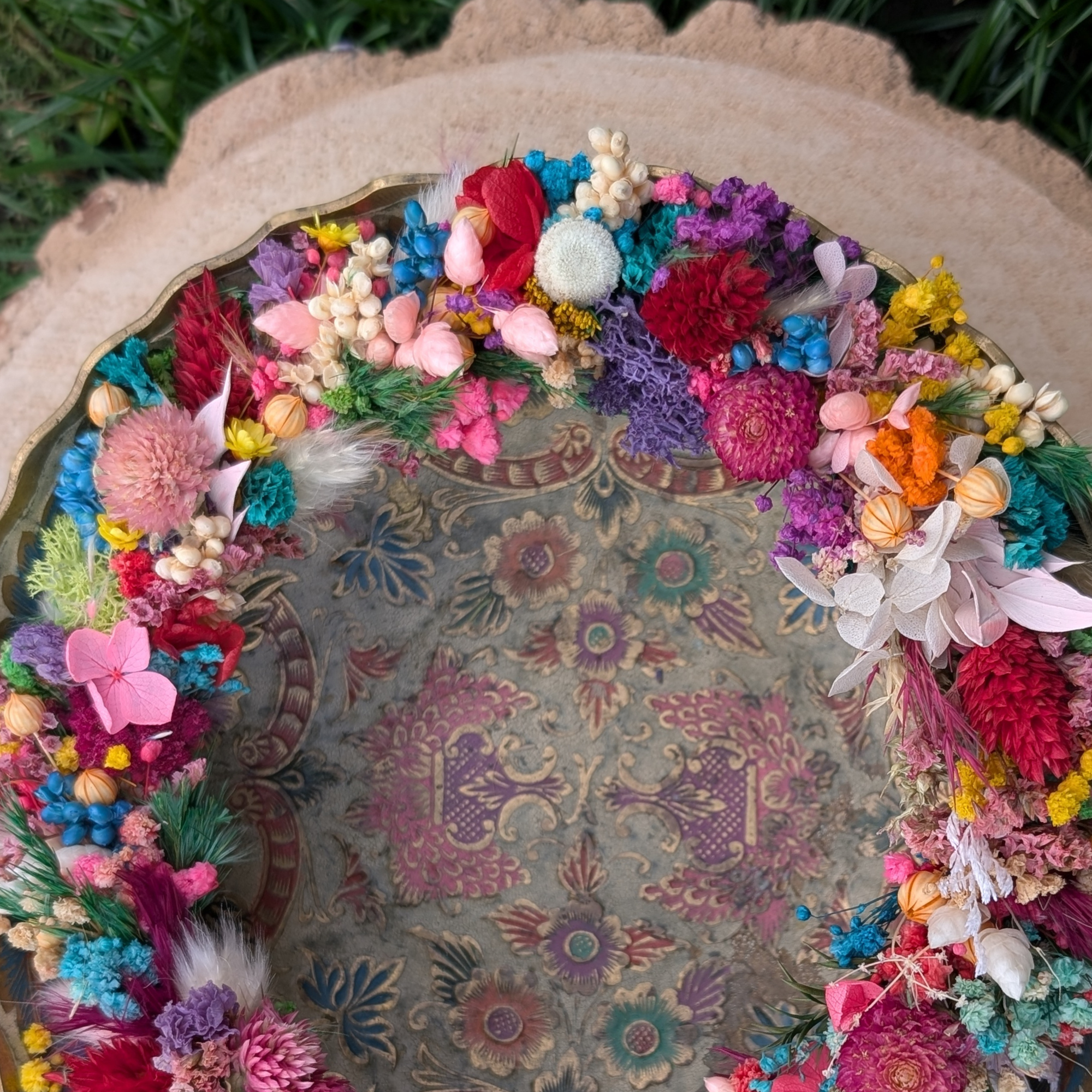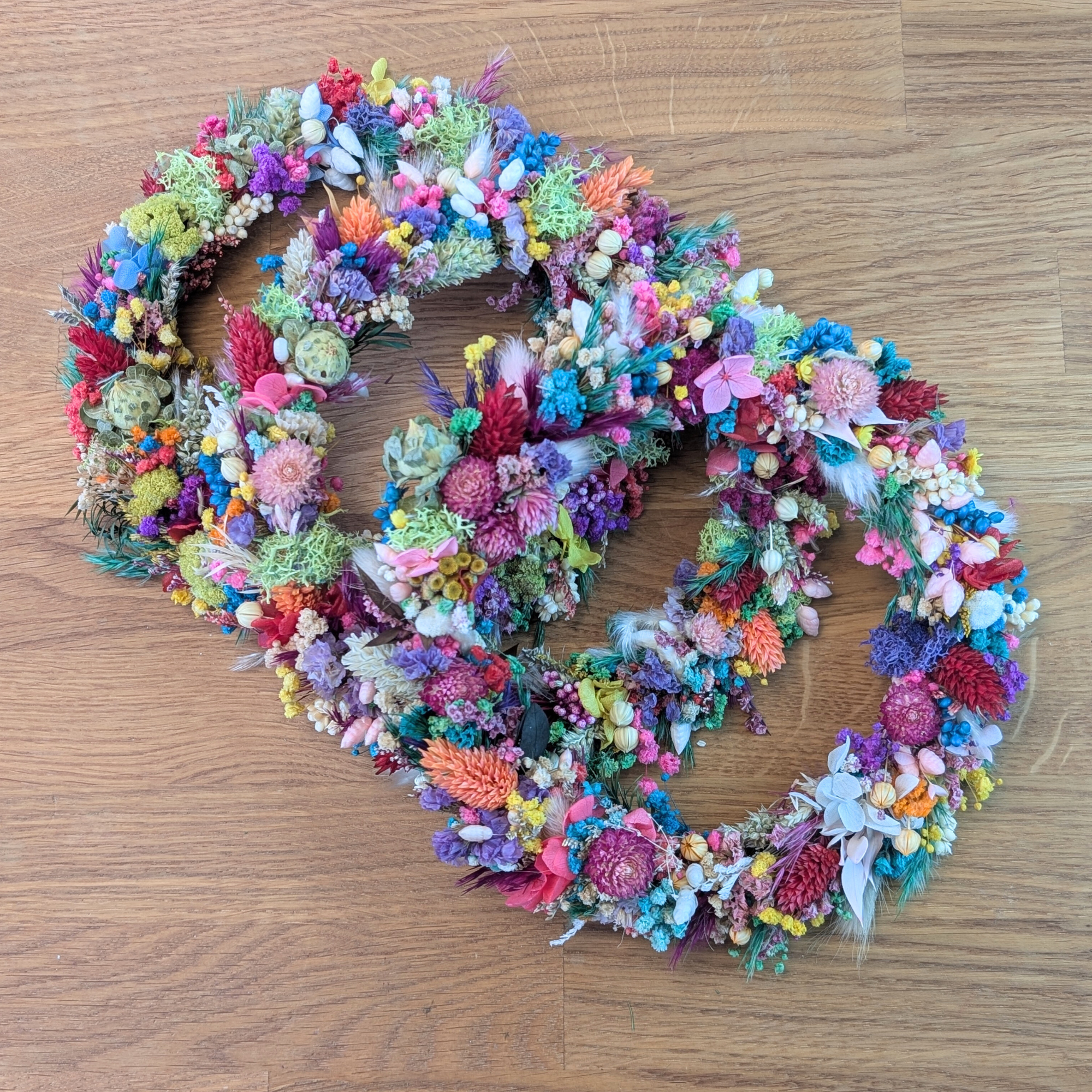 Klein im Durchmesser, groß in Detailtiefe: Dieser handgefertigte Trockenblumenkranz besticht durch seine vielschichtige, florale Komposition. Gebunden auf einem feinen Drahtkranz und komplett von Hand gewickelt, bringt er natürliche Leichtigkeit, Farbvielfalt und handwerkliche Sorgfalt in dein Zuhause – oder als Geschenk zu jemandem, der Schönes schätzt.