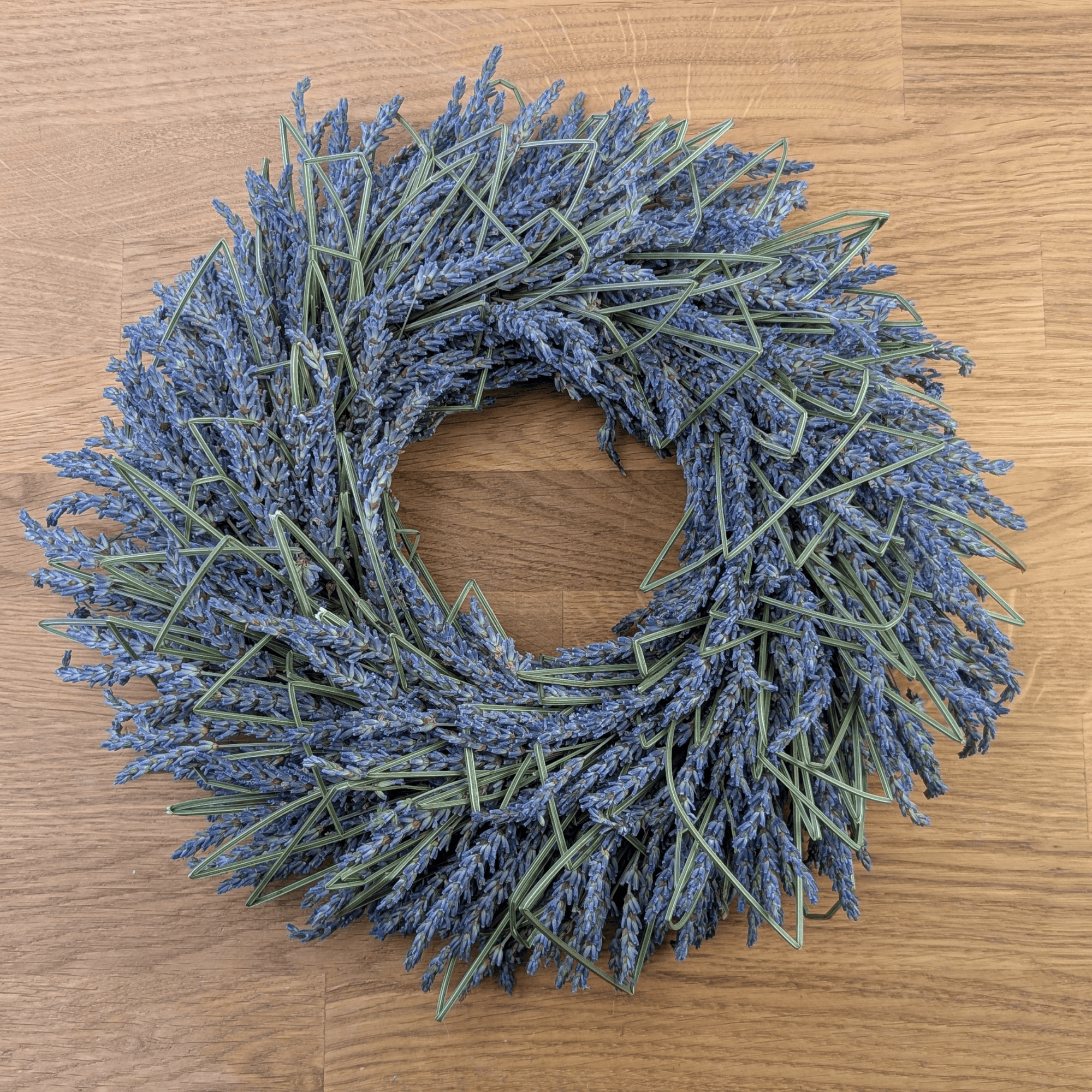 Lavendel steht für Ruhe, Entspannung und natürliche Eleganz. Dieser Kranz bringt all das mit – ganz ohne Zusatzmaterialien oder Deko. Die dichte Verarbeitung sorgt für Volumen und Beständigkeit, während die sorgfältige Handarbeit jedes Stück zu einem individuellen Unikat macht.