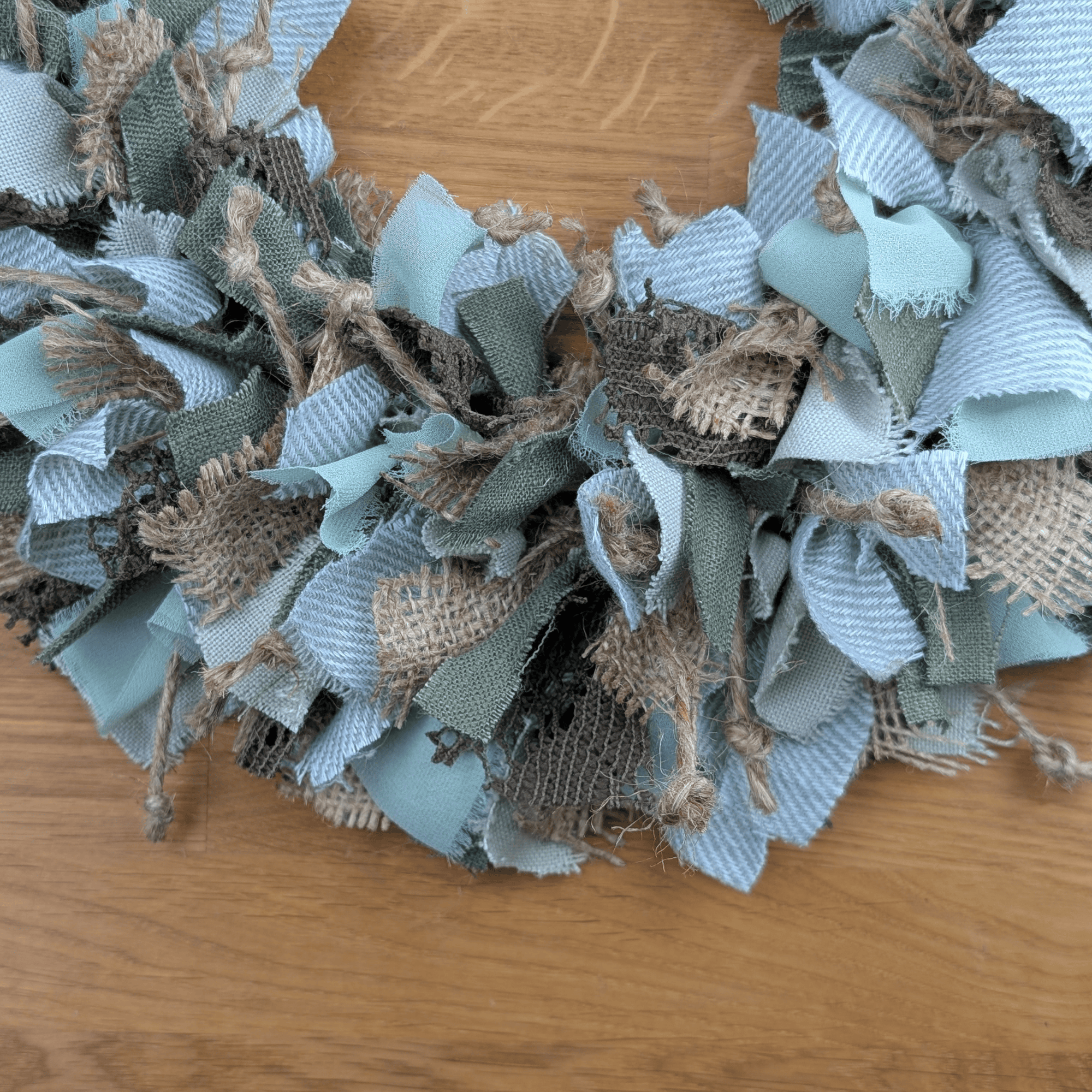 Upcycling-Kranz aus Stoff und Jute in Naturfarben