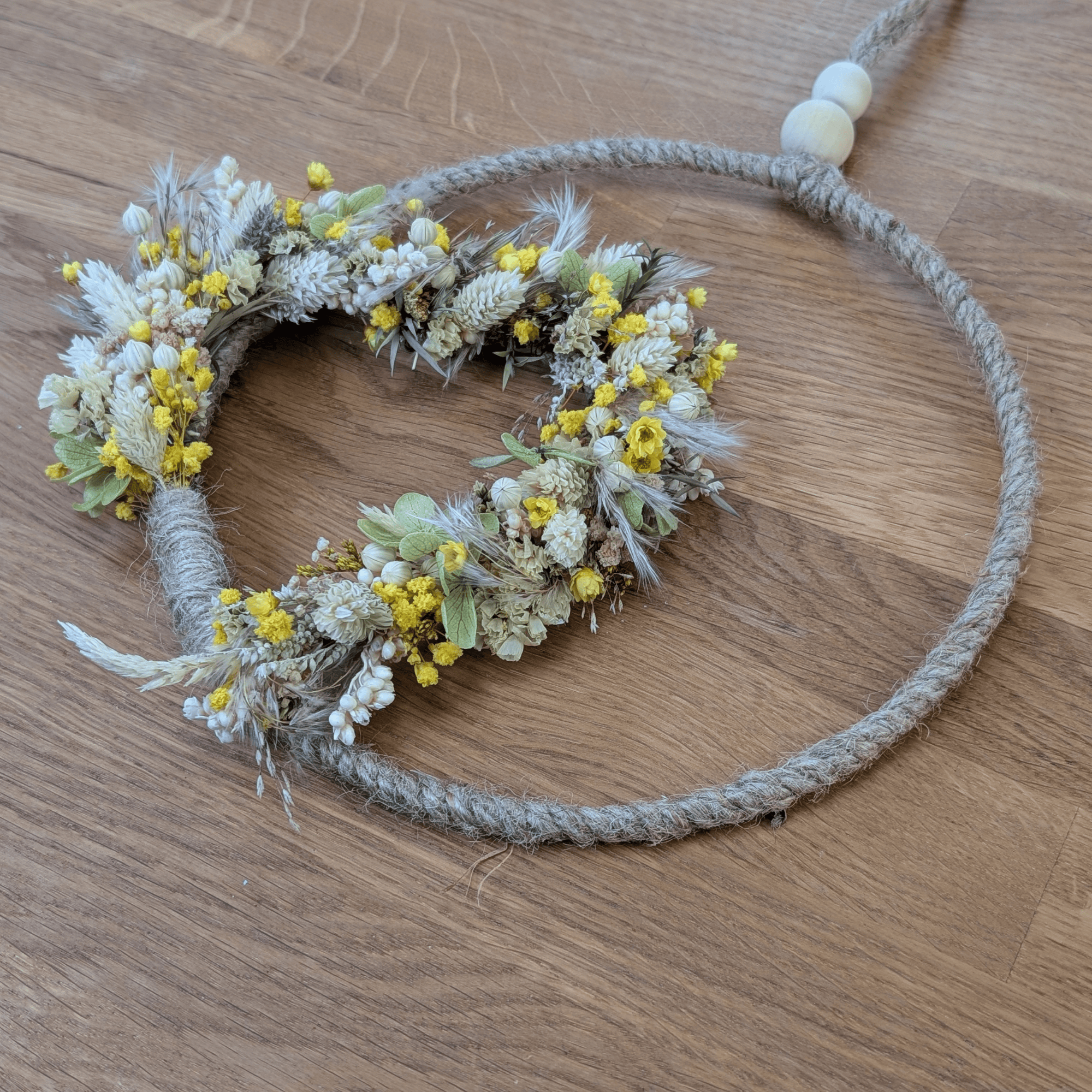 Trockenblumenkranz mit Holzperlen – Natürlich. Filigran. Handgemacht.