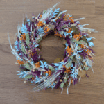 Farbenspiel in Trockenblumen – Kranz in Orange, Türkis & Pink