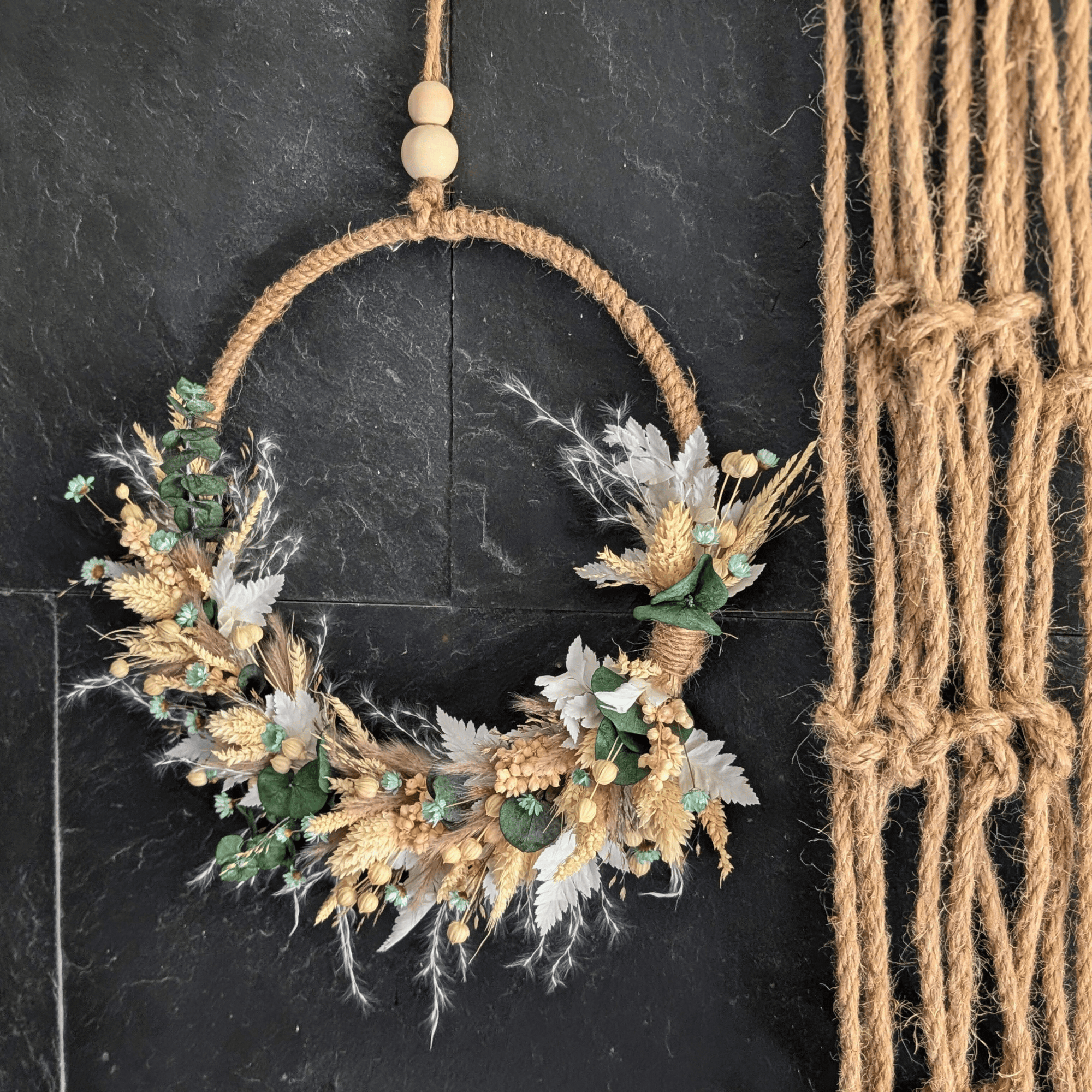 Trockenblumenkranz mit Holzperlen – Natürlich. Modern. Einzigartig.
