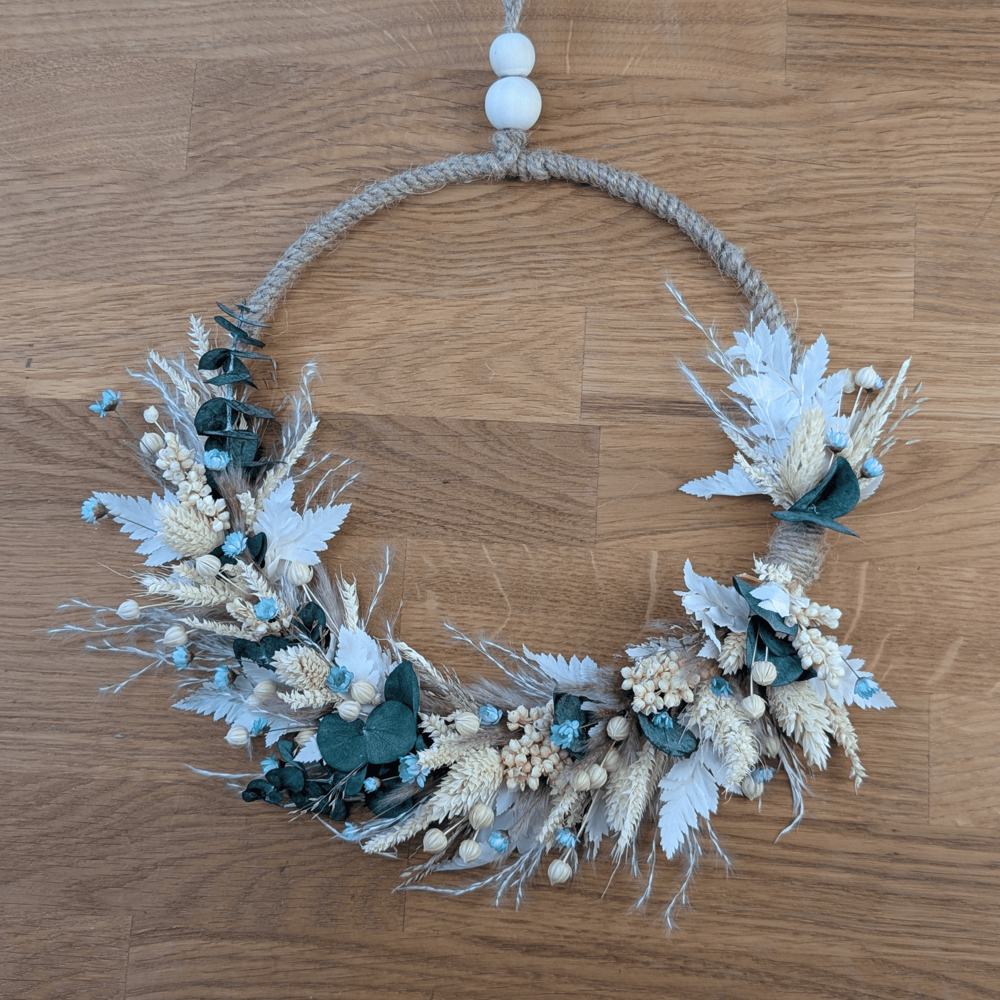 Trockenblumenkranz mit Holzperlen – 27 cm