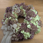 Die Rispenhortensie bildet die florale Hauptkomponente des Kranzes – ihre luftigen Blüten bringen Struktur und Weichheit zugleich. Die große Juteschleife verleiht dem Design eine rustikale Note und macht ihn besonders wirkungsvoll in Eingangsbereichen, auf Naturholz oder vor weißen Wänden. Ideal für alle, die natürliche Dekorationen mit Format und Seele lieben.