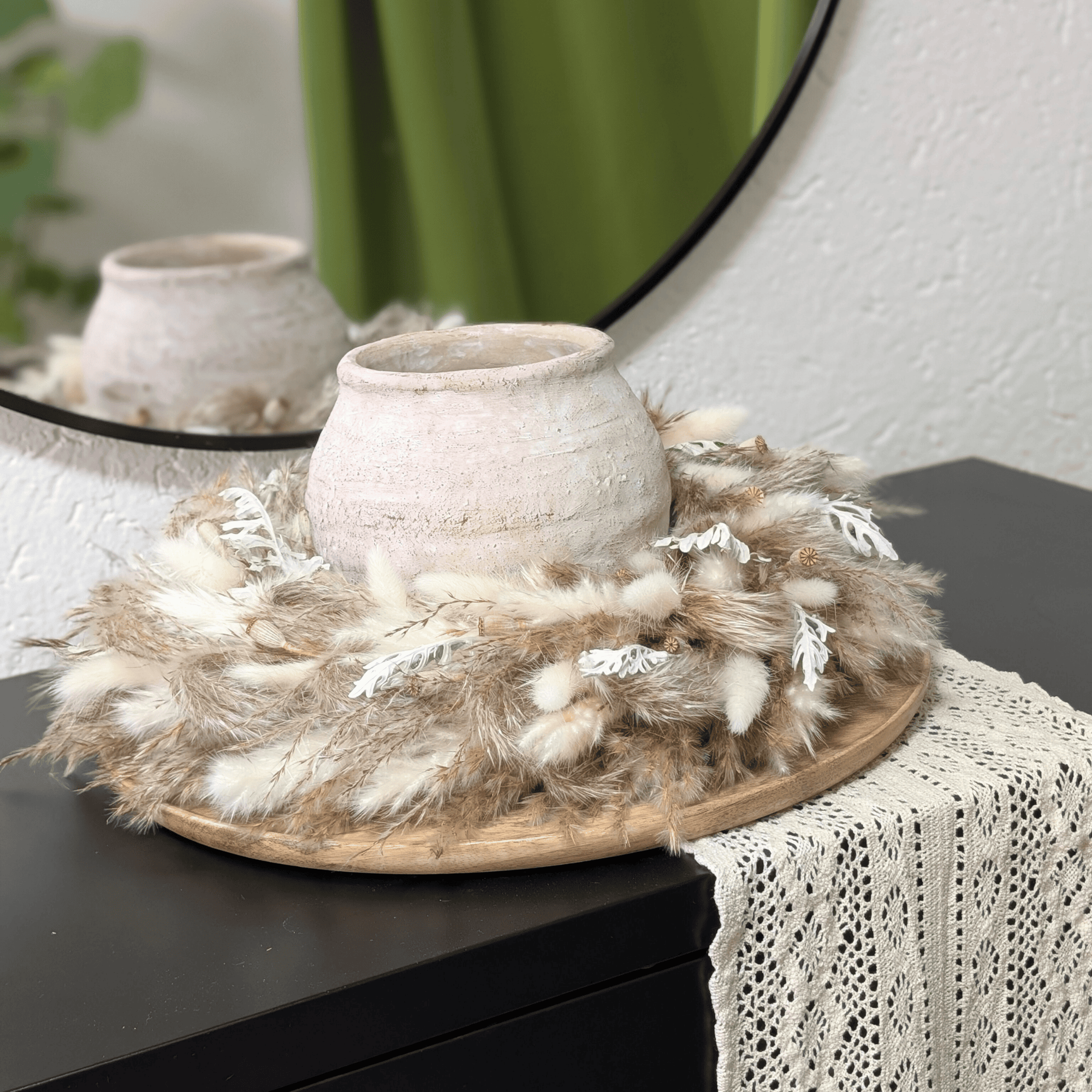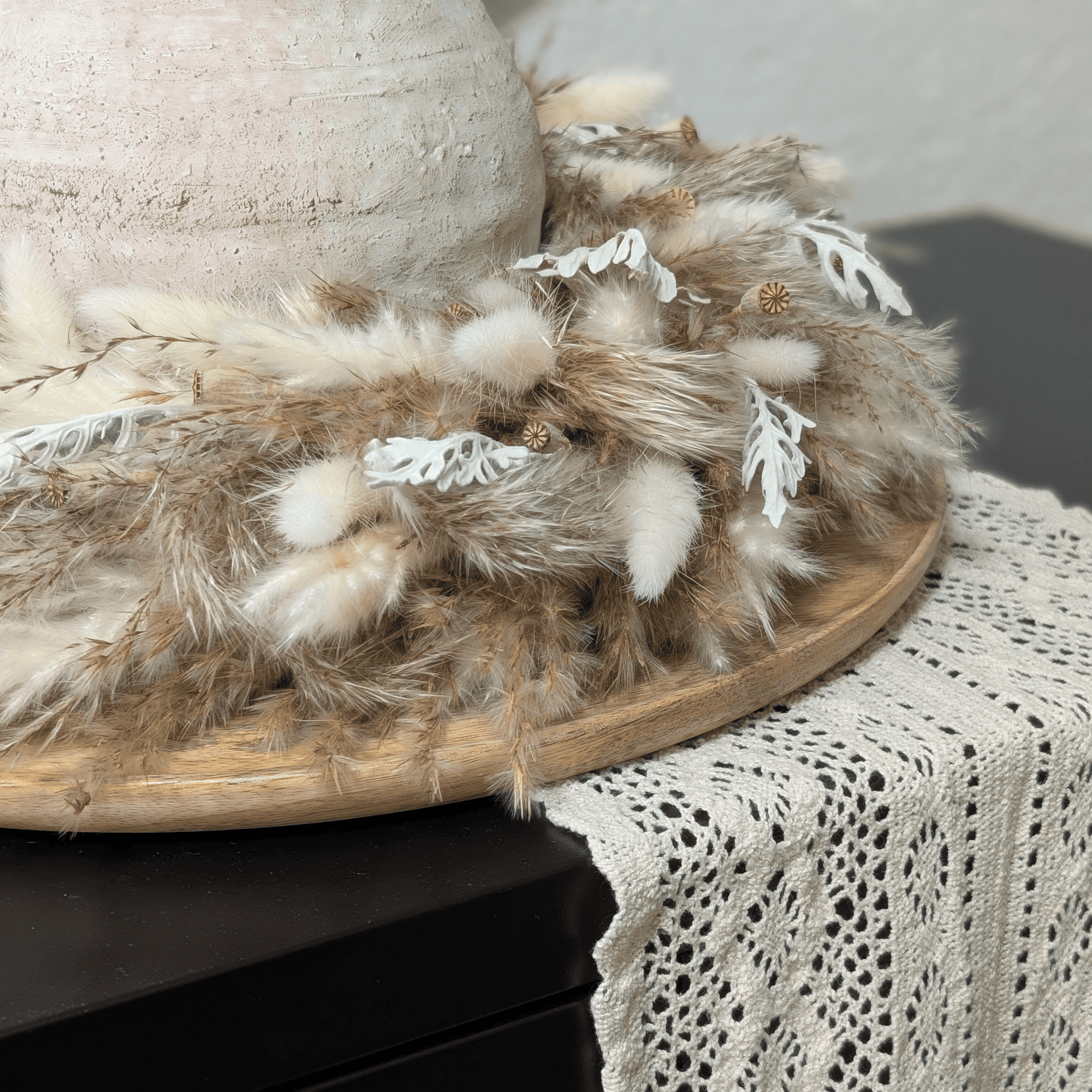 Trockenblumenkranz mit Spitze & Pampas – 30 cm