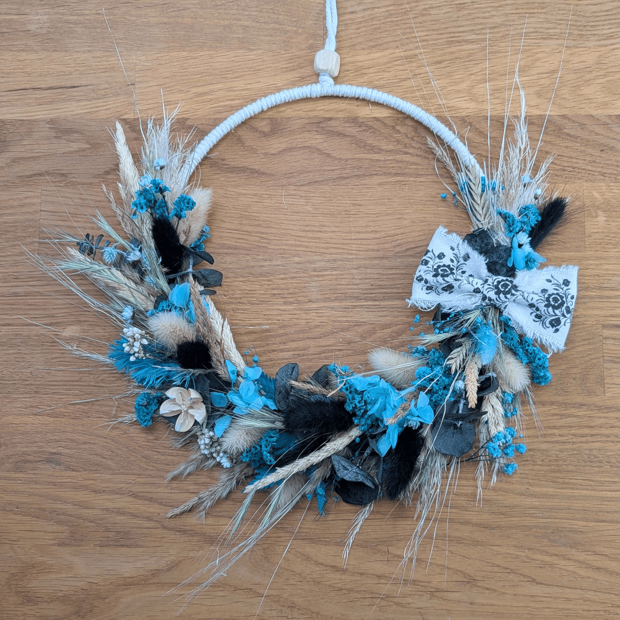 Trockenblumenkranz mit Makramee-Band – Natürlich. Zart. Handgemacht.
