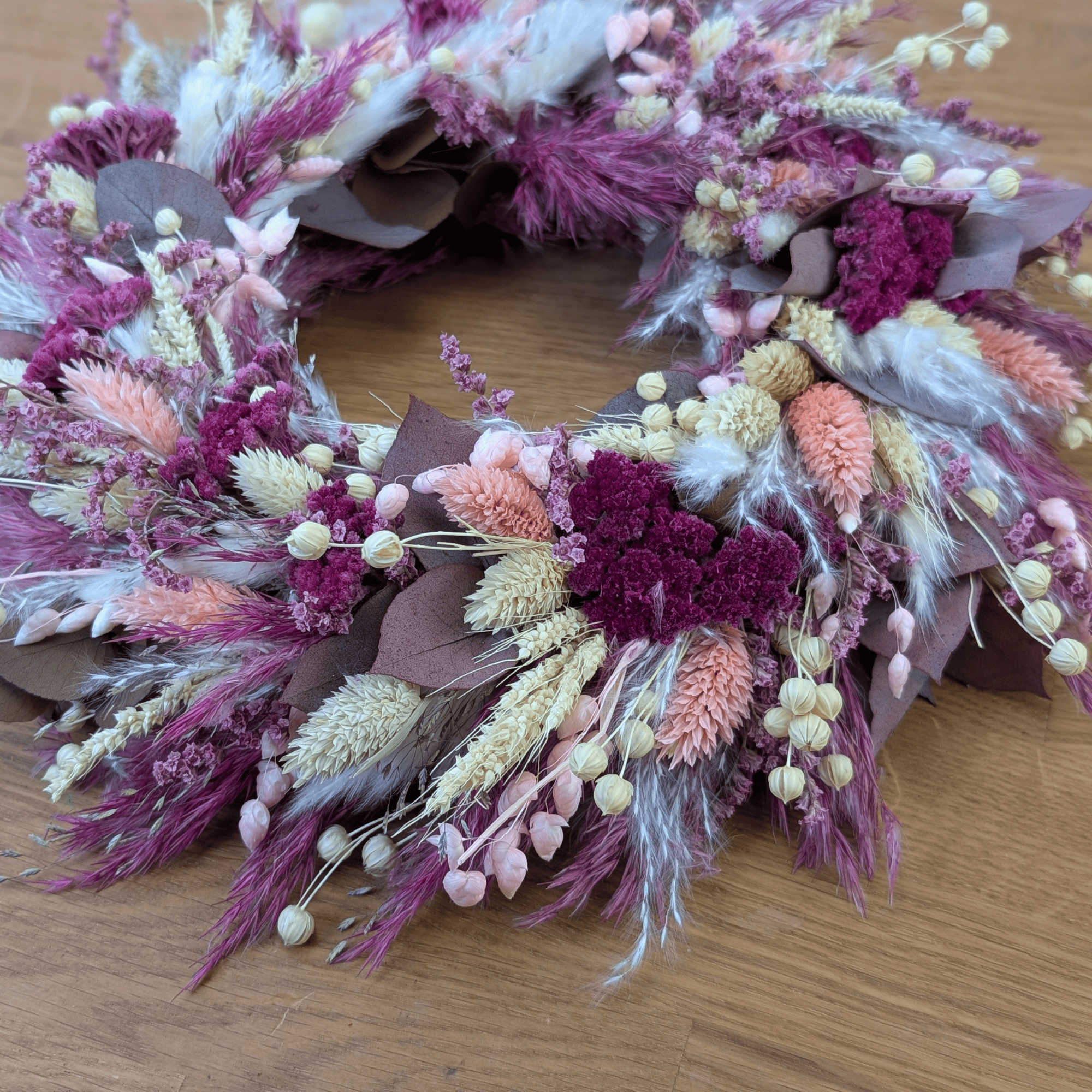 - Mit Liebe handgemacht: Jeder Trockenblumenkranz wird in liebevoller Handarbeit gefertigt – kleine Abweichungen in Form, Farbe und Blütenanordnung machen jedes Stück zu einem Unikat.